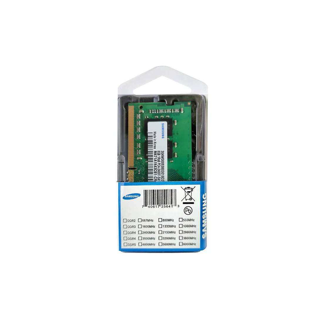رم لپتاپ PC4-2400 سامسونگ 8 گیگابایت (اورجینال) برای ارتقاء عملکرد لپتاپها گزینهای ایدهآل محسوب میشود. این حافظه با پیکربندی تک کاناله و تایمینگ CL17، تأخیر کمی داشته و به بهبود سرعت و کارایی سیستم کمک میکند. ولتاژ کاری این رم 1.2 ولت است که مصرف انرژی پایینتری را نسبت به نسلهای قبلی فراهم میکند.