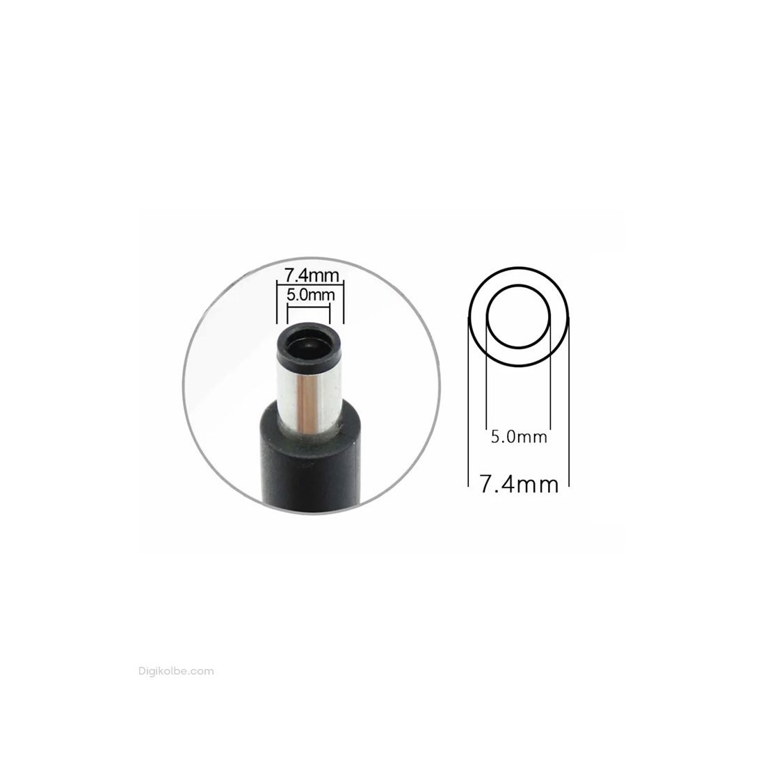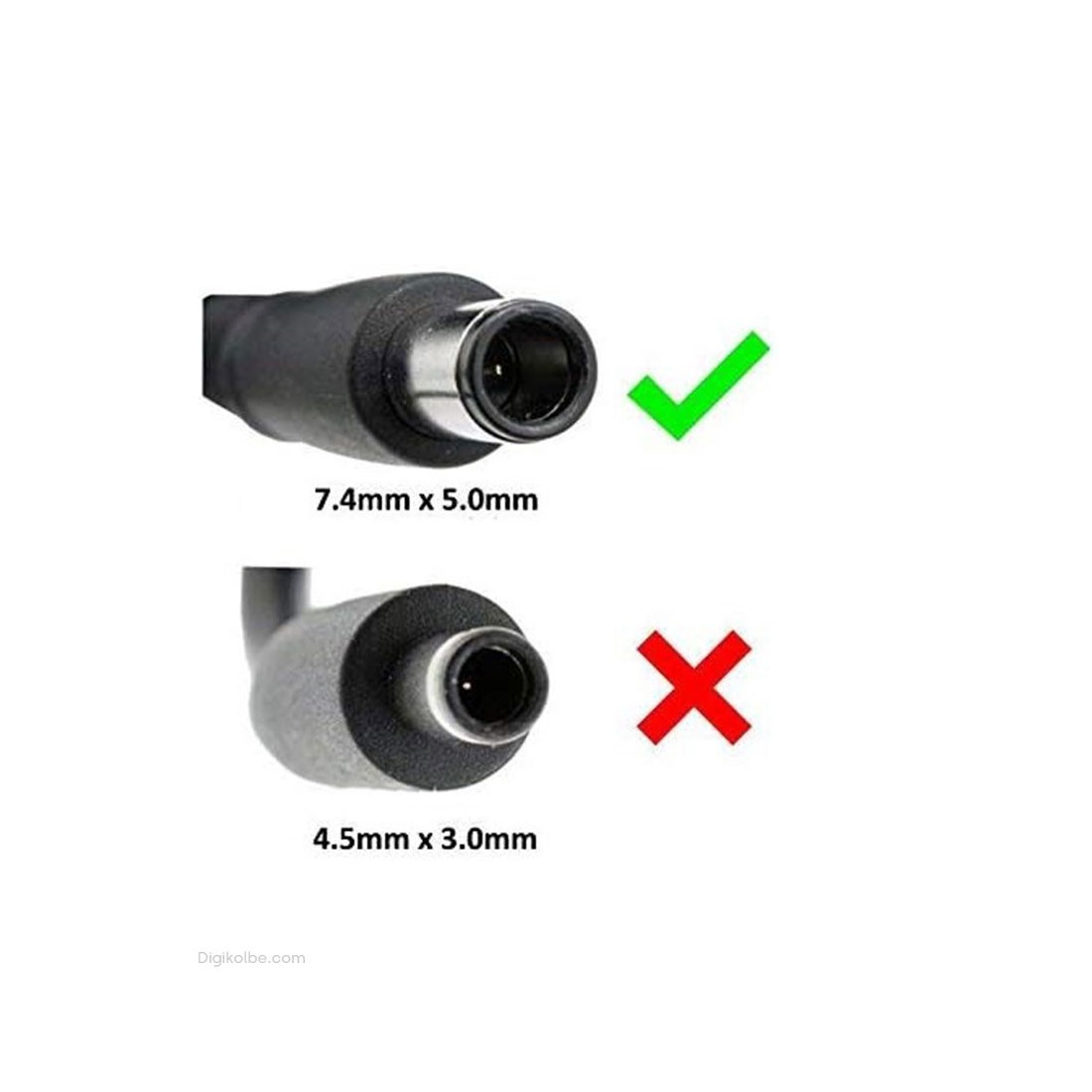 - کانکتور ۵.۰ × ۷.۴ میلیمتری را به ورودی شارژ لپتاپ وصل نمایید.