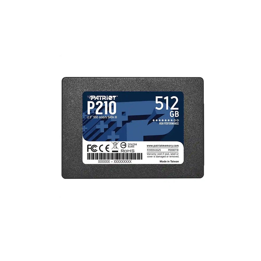 حافظه اساسدی Patriot P210 (ظرفیت ۵۱۲ گیگابایت) یک درایو حالتجامد در فرمفاکتور ۲٫۵ اینچ با رابط SATA III (۶ Gb/s) است که برای ارتقاء سیستمهای دسکتاپ و لپتاپ طراحی شده است. این محصول با ارتفاع ۷ میلیمتر و وزن کم، جایگزینی سبک و مقرونبهصرفه برای هارددیسکهای قدیمی بهحساب میآید. مطابق با مشخصات رسمی، سرعت خواندن متوالی تا حدود ۵۲۰ مگابایتبرثانیه و سرعت نوشتن متوالی تا حدود ۴۳۰ مگابایتبرثانیه گزارش شده است.